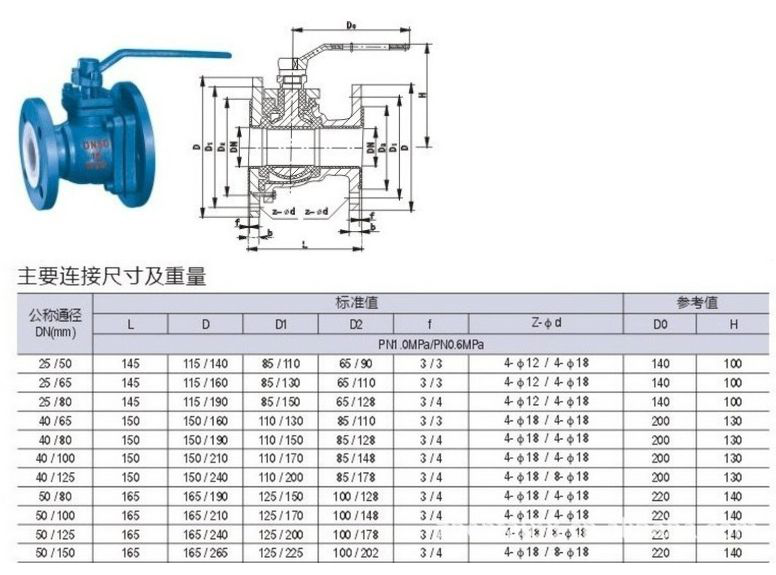 鋼襯四氟球閥參數表